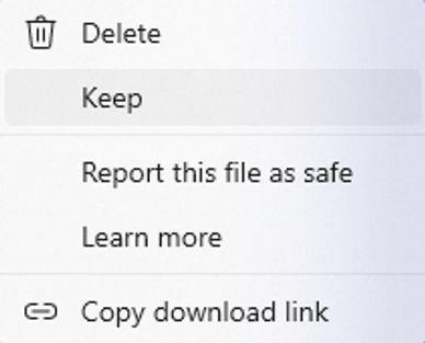 When you click on the download while using Edge as your browser, you may get a message like the above.